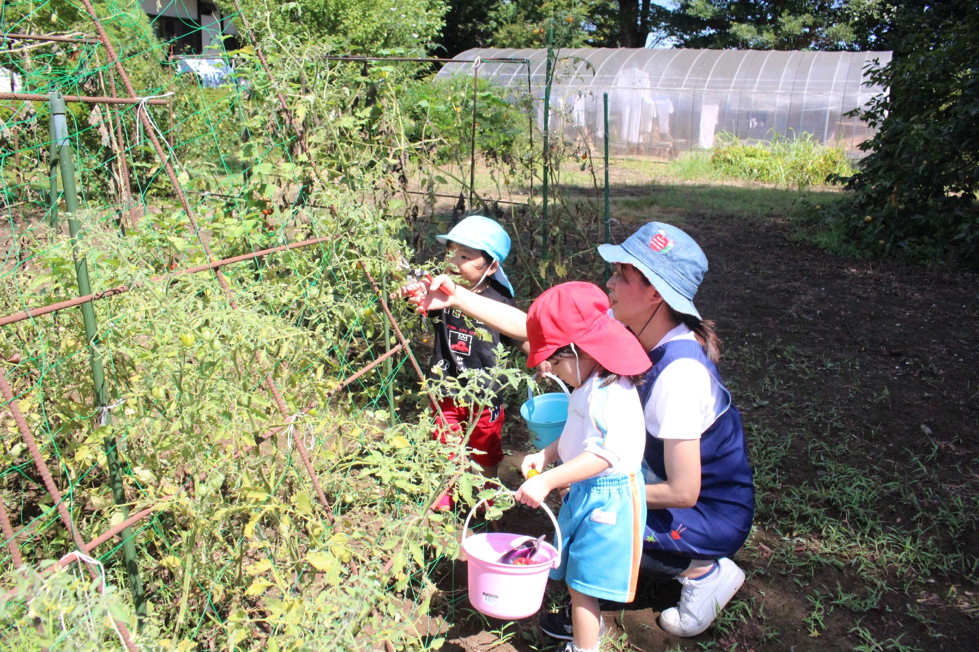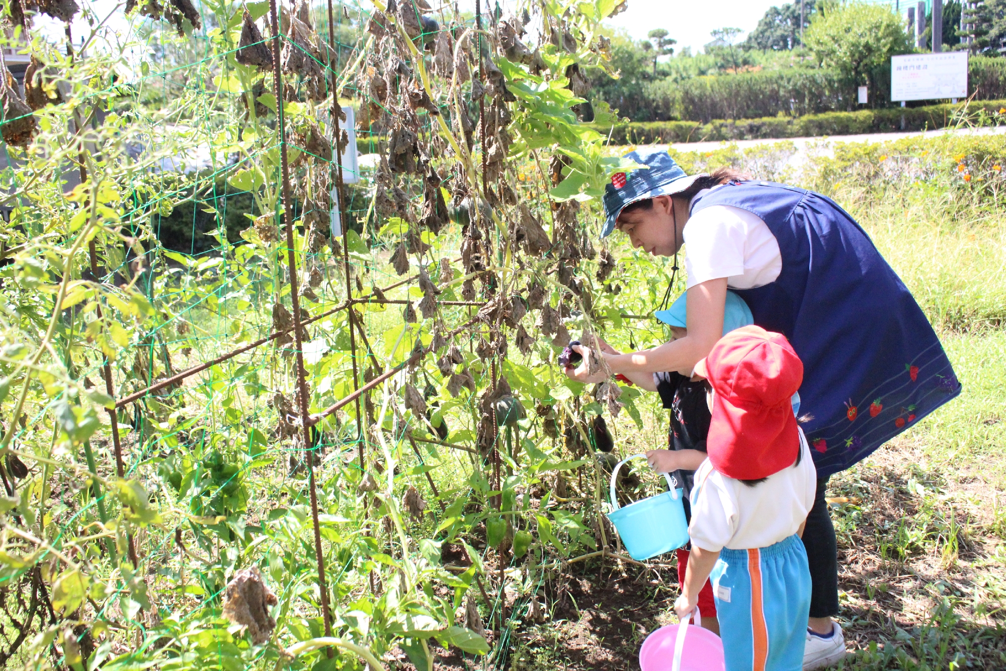 土曜保育のお友達と園の畑で野菜の収穫をしました。