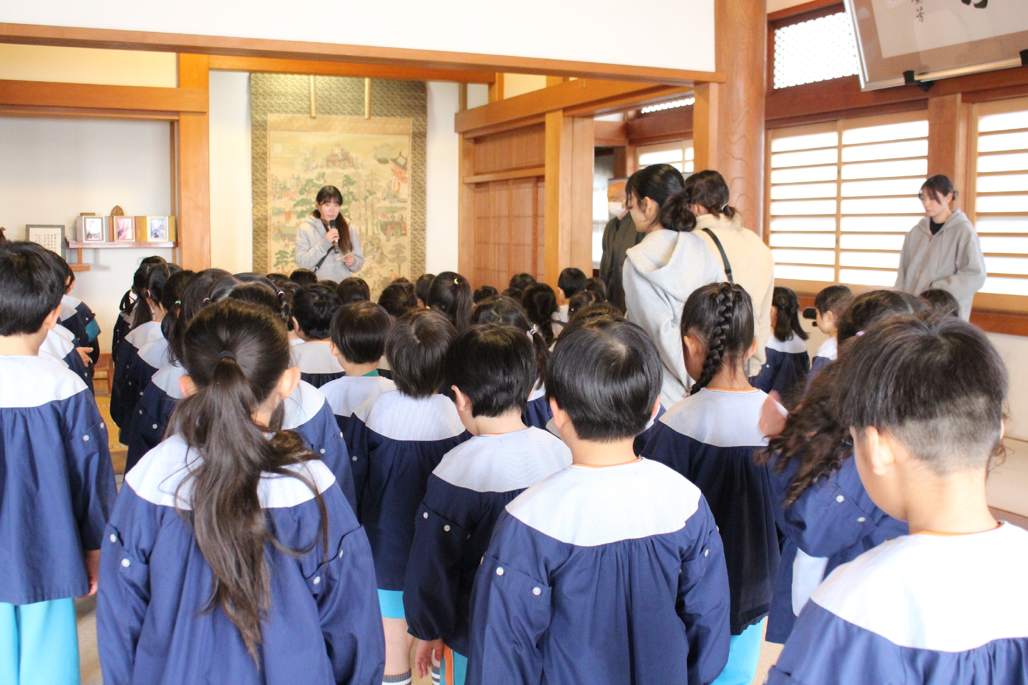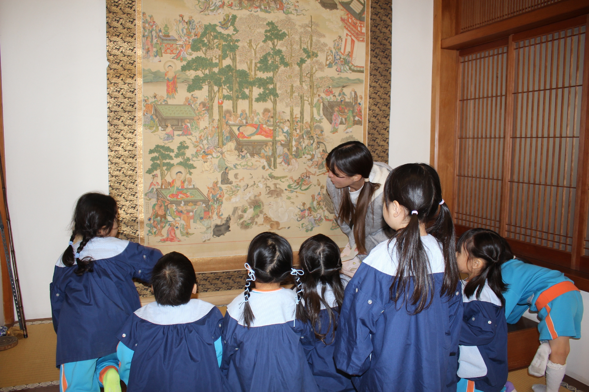 掛け軸にも興味津々な子どもたち。「動物がいる!」「ゾウさんがいる!」と嬉しそうに教えてくれました。